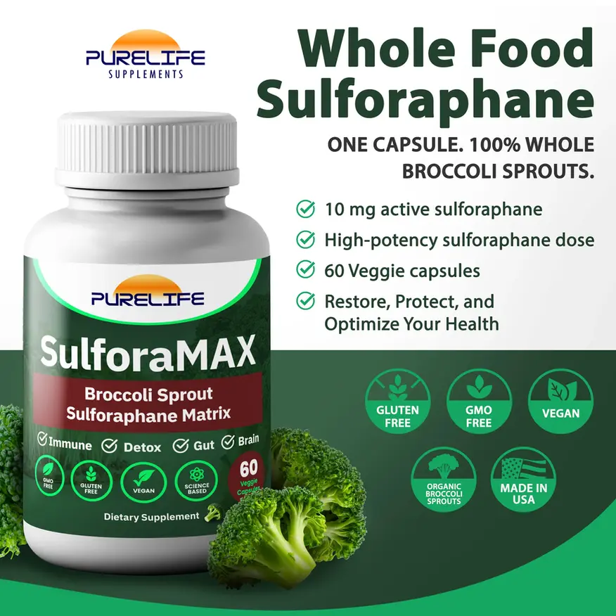 - CONTAINS THE REAL STUFF: SulforaMAX contains a powerful 10 mg = 10,000 mcg sulforaphane per capsule that is activated when you consume it. Each capsule will give you the same amount of sulforaphane as 10.5 oz of broccoli vegetable. For optimal sulforaphane intake, choose a broccoli sprout based product like SulforaMAX.